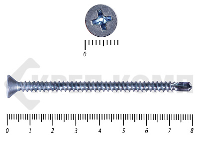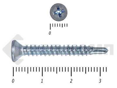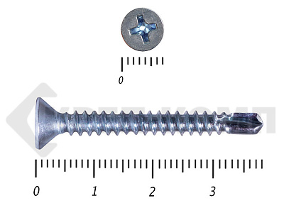 Оцинкованные потайные саморезы со сверлом DIN 7504 P – имеют полную резьбу и сверло на кончике. Потайная головка при вкручивании входит в материал и не выступает на поверхности. Такими саморезами можно закрепить листовые отделочные материалы из пластика, металла, фанеры к металлическим конструкциям. Саморез может высверливать отверстие в углеродистой стали толщиной до 4мм.