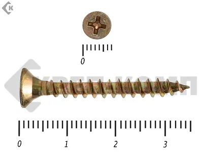 - Pz («Позидрив») – у желтых и белых универсальных саморезов. Размер шлица (№1, №2 или №3) зависит от диаметра головки. Чем больше размер крепежа – тем больше шлиц под крестовую отвертку или биту-насадку для шуруповерта;